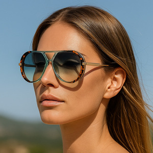 欧美新款双梁飞行员个性百搭太阳镜休闲复古潮流女墨镜高级感眼镜