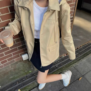 深圳南油高端女装2025秋季法式设计感连帽抽绳工装风夹克开衫外套