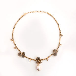 花卉花瓣项链手链银针耳钉胸针女士首饰套装小众轻奢高级感毛衣链
