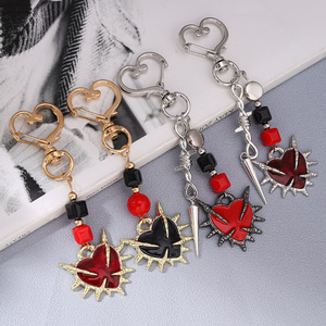欧美跨境饰品新款宝剑桃心钥匙链哥特风荆棘爱心钥匙扣包包挂饰