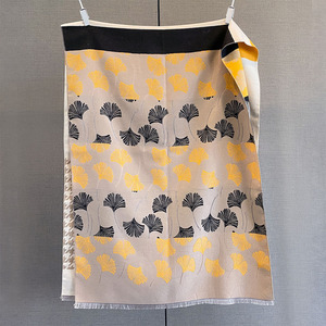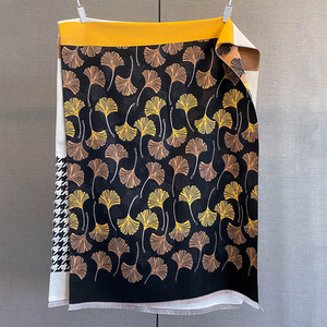秋冬季仿羊绒提花围巾女银杏叶千鸟格拼接撞色高级感保暖围脖披肩