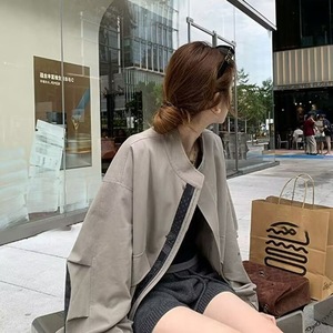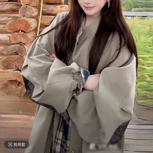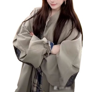 英伦风衣外套2025新款小个子休闲秋季宽松时尚百搭上衣灰绿色氨纶