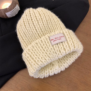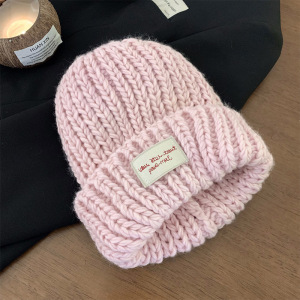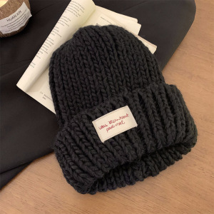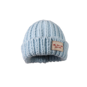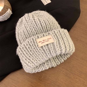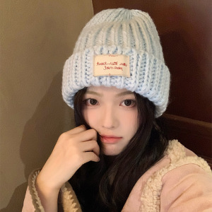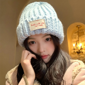 大头围贴布蓝色针织毛线帽女2025年秋冬季显脸小百搭帽子护耳冷帽