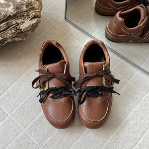 美式复古德训鞋女2025新款春秋季皮带扣双鞋带平底时尚运动休闲鞋