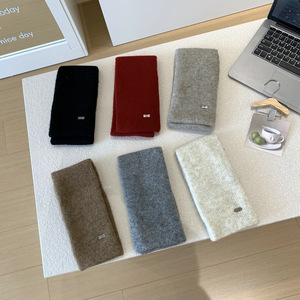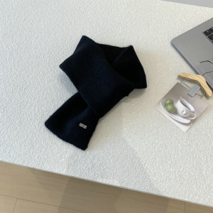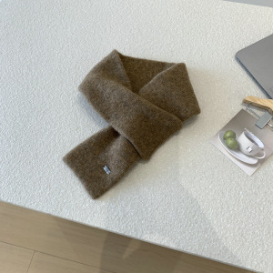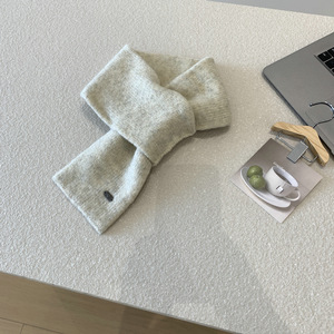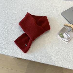 红色交叉围巾含羊毛实用短款围脖高品质简约懒人百搭金属标纯色