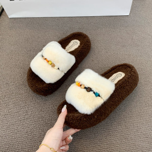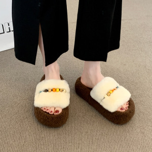 厚底毛毛拖鞋女外穿2025年新款秋季小个子百搭棉拖鞋洋气增高鞋子