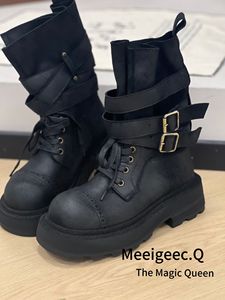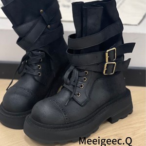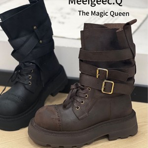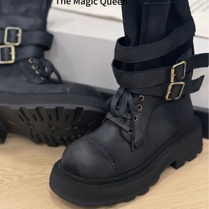 复古磨砂烟筒粗跟短靴女2025新款爆款套筒切尔西靴厚底圆头马丁靴