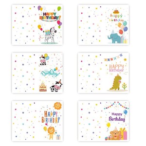 生日贺卡-动物横版03款(6个卡片+6个信封+6个贴纸)