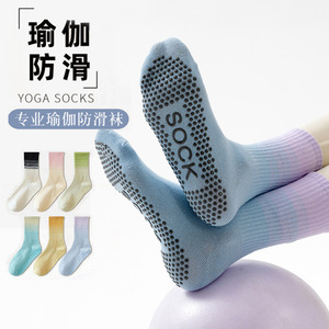 小红书爆款渐变防滑袜女长运动防摔伤硅胶防滑吸汗静音瑜伽袜