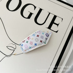 L家2025新款村上隆联名白三彩老花发夹边夹发卡发饰经典字母头饰