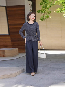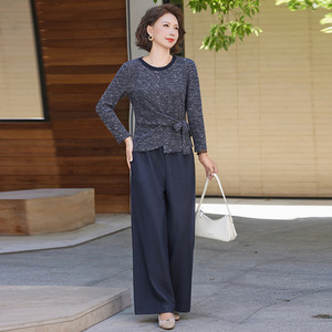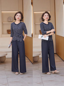 中老年妈妈春秋新款端庄大气套装时尚气质减龄收腰显瘦长袖两件套