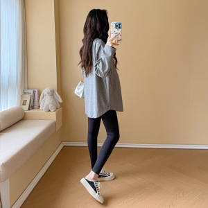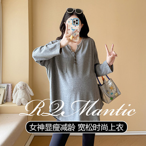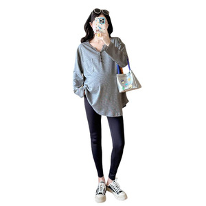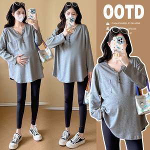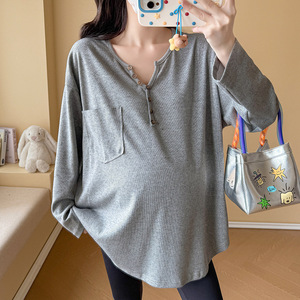 孕妇秋装2025新款v领宽松孕妇上衣秋季针织打底衫长袖T恤孕期穿搭