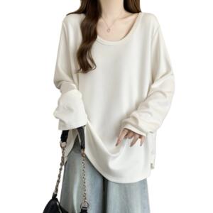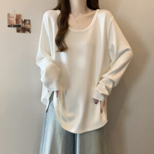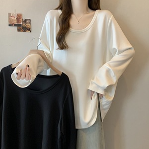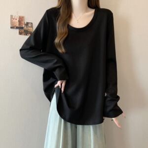 大码胖mm纯色休闲百搭长袖T恤宽松显瘦别致绝美上衣打底衫女春款