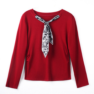 秋季新款百搭丝巾长袖设计大码洋气显瘦百搭时尚上衣早秋内搭女