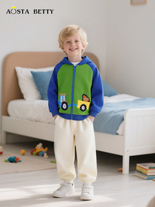 秋季新款男童卫衣外套欧美风长袖儿童帽衫卡通汽车拉链童外套代发