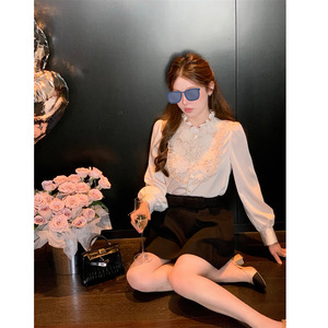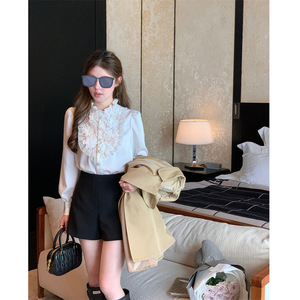 杨小卷 法式高级感蕾丝花边立领衬衫女长袖白色气质上衣秋季叠穿
