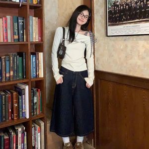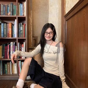 韩系花灰斜肩格子绑带内搭t恤女春秋字母印花新款修身长袖上衣ins