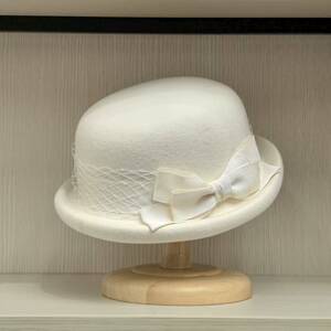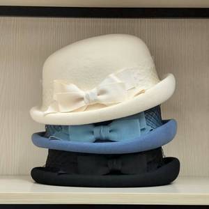 法式名媛网纱蝴蝶结渔夫帽子女秋冬澳洲羊毛毡帽赫本风卷边盆帽子