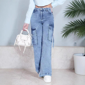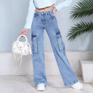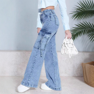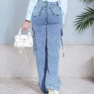 新款TUMA爆款女士休闲舒适大口袋工装牛仔裤时尚百搭