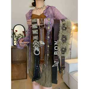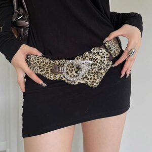美式复古豹纹棕色腰带女小众高级感配裙子牛仔裤带百搭宽版腰封潮