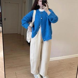 韩版感软糯克莱因蓝色针织开衫机能风辣妹长袖时尚毛衣外套女