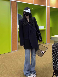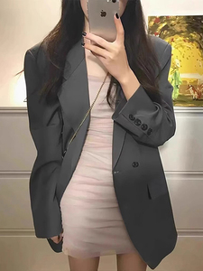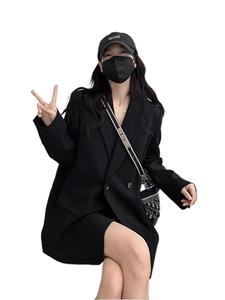 感灰色西装外套女春季2025年新款宽松oversize黑色小西服套装