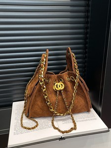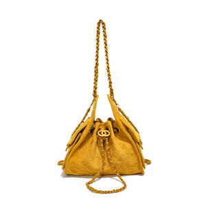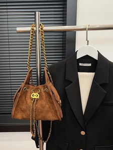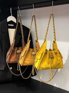 2025季新款抽绳多口袋时尚百搭球纹水桶包斜跨小众单肩包腋下包