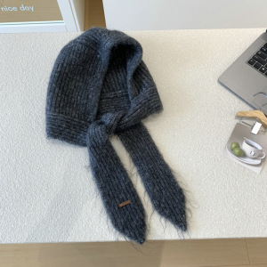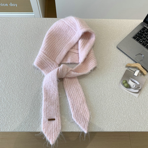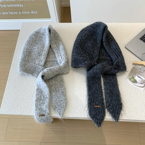 法帽披肩针织一体围巾纯色连帽帽子外搭多用新款网红针织秋冬季