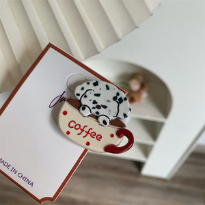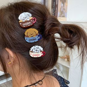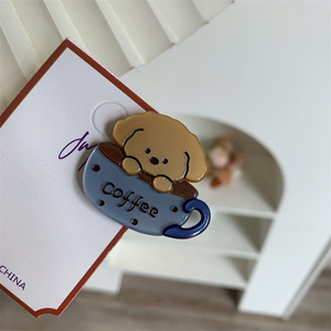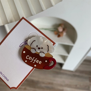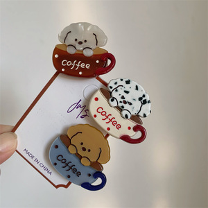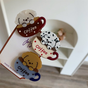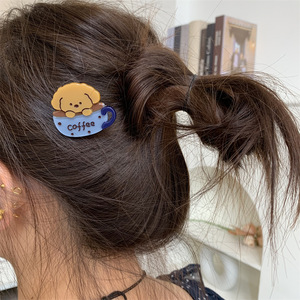 小狗coffee可爱萌宠咖啡小熊字母边夹醋酸拼接刘海夹碎百搭发饰女