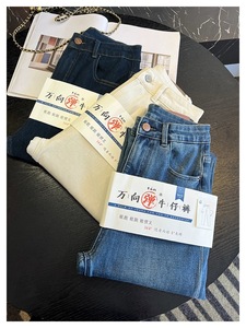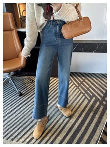 镇店王牌!直直腿~复古阔腿牛仔裤女2025秋季宽松高腰拼接直筒裤