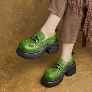 2025秋季英伦风小皮鞋厚底单鞋一脚蹬女鞋坡跟轻便真皮乐福鞋女款