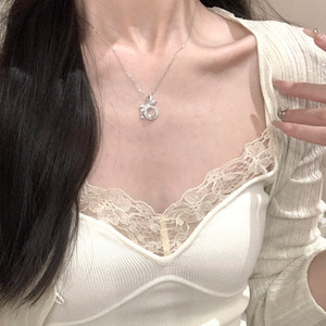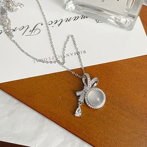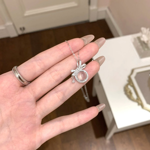 蒂奇新中式精致白玉髓蝴蝶结项链S925纯银轻奢ins清冷感锁骨链女