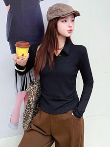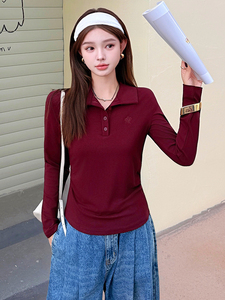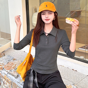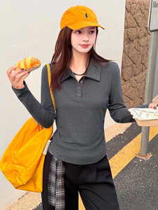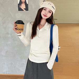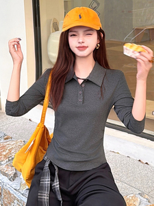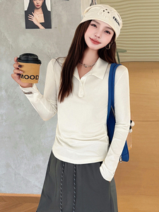 POLO领长袖T恤衫女2025春秋季休闲洋气韩版修身显瘦小个子打底衫
