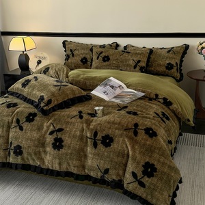 高克重兔毛绒四件套法式花边牛奶绒被套加厚法莱绒床单冬季绒套件