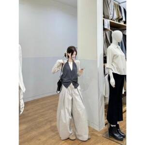 白色打底衫+灰色背心