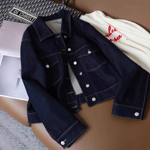 这品质感真没谁了!亮丝明线翻领小众设计感短款牛仔外套女春季