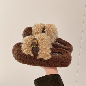 新款毛绒拖鞋平底秋冬款家居一字毛毛拖鞋配饰软底休闲外穿毛拖女