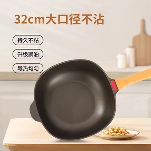 迈巴勒同款钛极岩铸炒锅家用不粘锅带蒸笼轻油少烟不挑炉灶