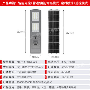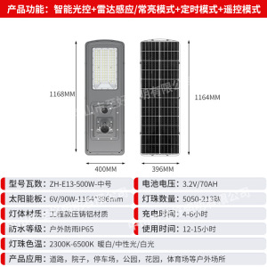 跨境太阳能路灯工程款户外照明压铸铝太阳能灯乡村庭院市政路灯