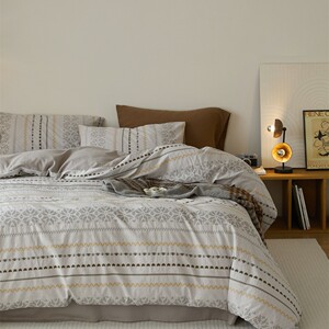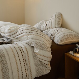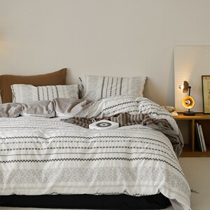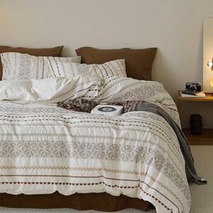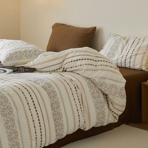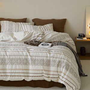 遇见费尔岛 | 复古侘寂风色织全棉四件套简约风提花纯棉被套床笠