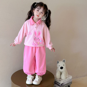 女童春秋卫衣套装2025新款韩版卡通兔子宽松两件套宝宝休闲洋气