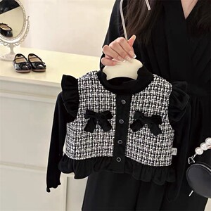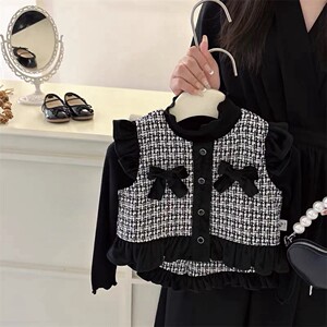 女童小香风套装春秋时尚百搭打底衫小女孩洋气套装马甲短裤一整套