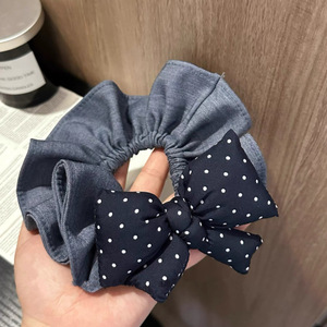 蓝灰布艺发圈时尚藏青波点蝴蝶结发绳头饰2025新款气质扎马尾头绳