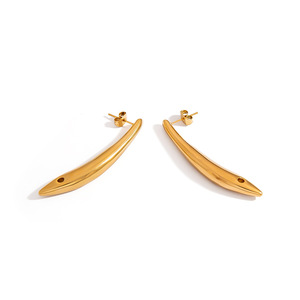 跨境不锈钢耳钉夸张沙丁鱼独特耳环新款18K金不掉色耳饰女