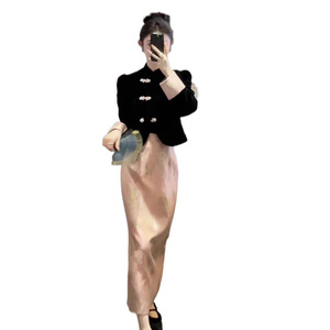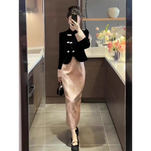 黑色丝绒上衣+半身裙(套装)
