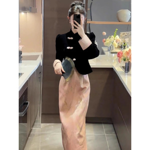 新中式国风丝绒上衣春秋新款气质一整套入秋穿搭时尚套装女装