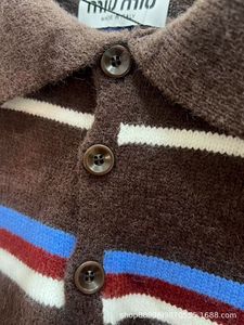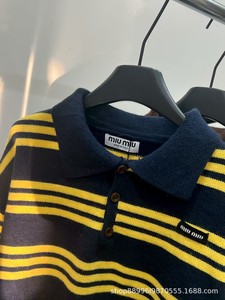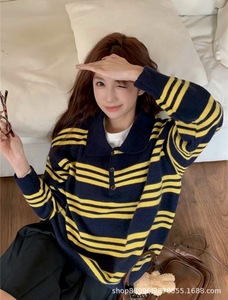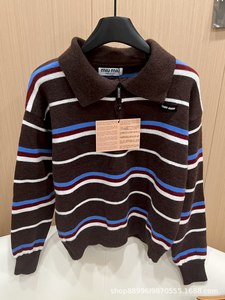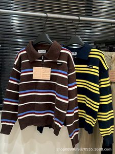 25秋冬新款MIU学院风简约百搭韩系休闲条纹针织撞色毛衣上衣女