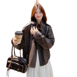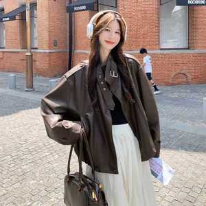 韩版宽松咖色短款皮衣外套女春秋2025新款小个子PU夹克爆款高级感