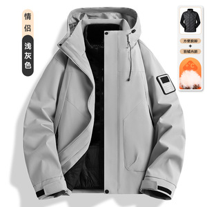两件套户外防风防水三合一羽绒可拆卸冲锋衣90绒登山服新国标夹克