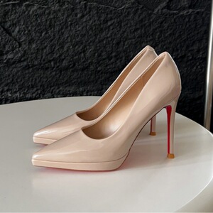 YX礼仪漆皮高跟鞋女法式气质尖头防水台不累脚细跟通勤裸色单鞋
